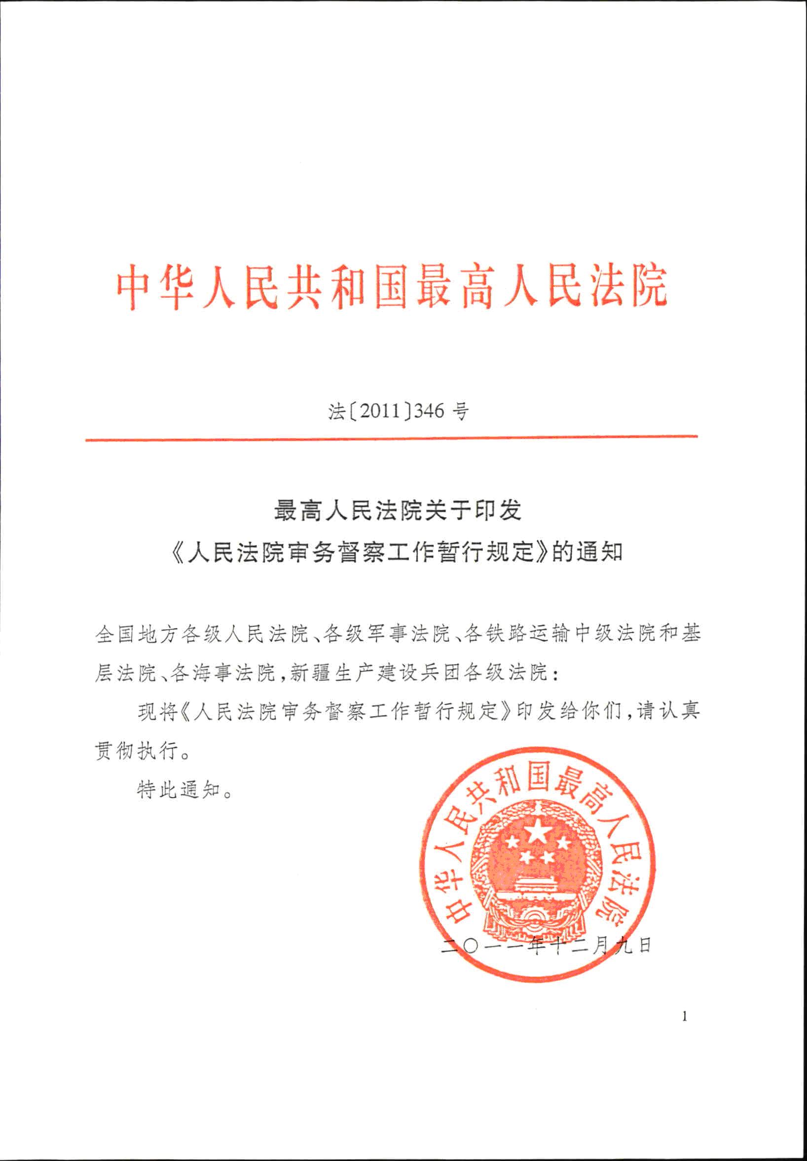 最高人民法院关于印发《人民法院审务督察工作暂行规定》的通知