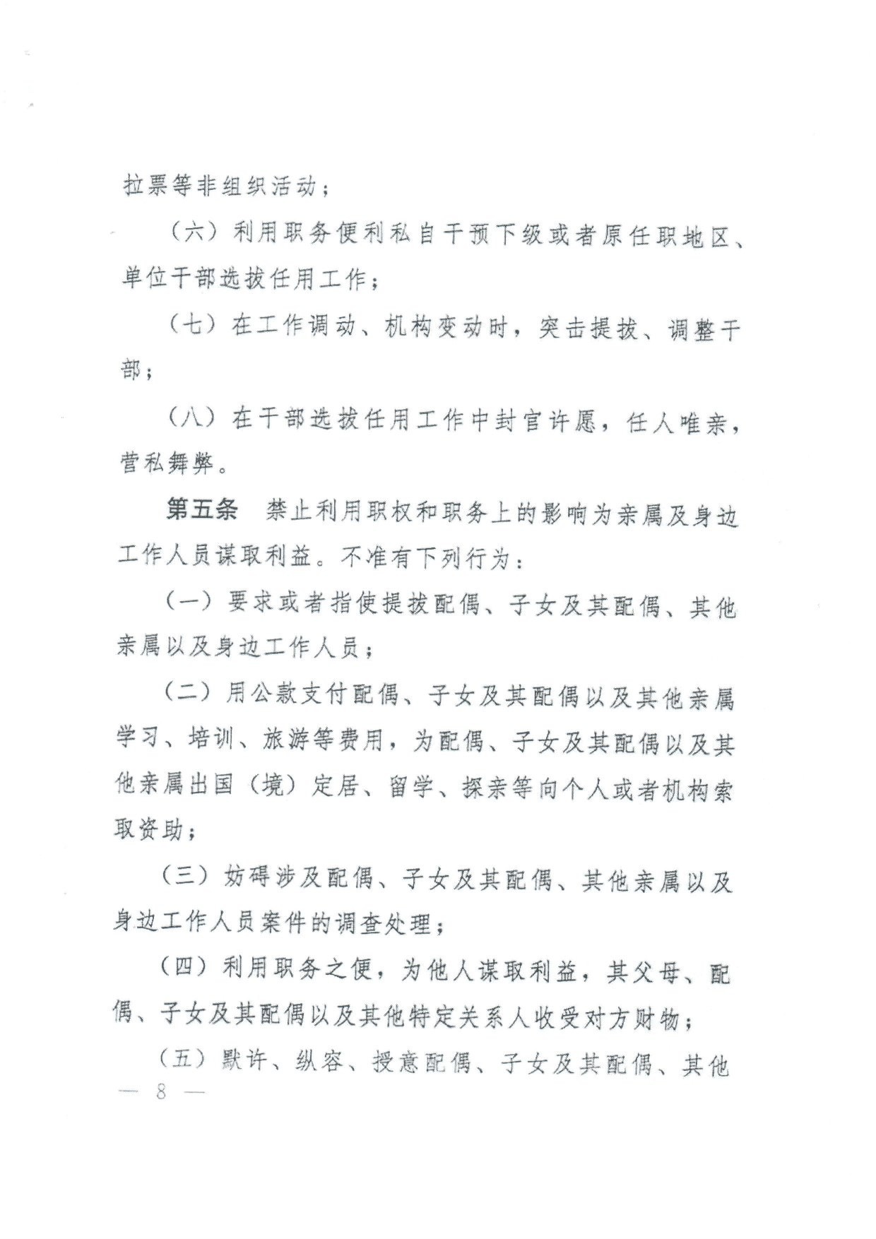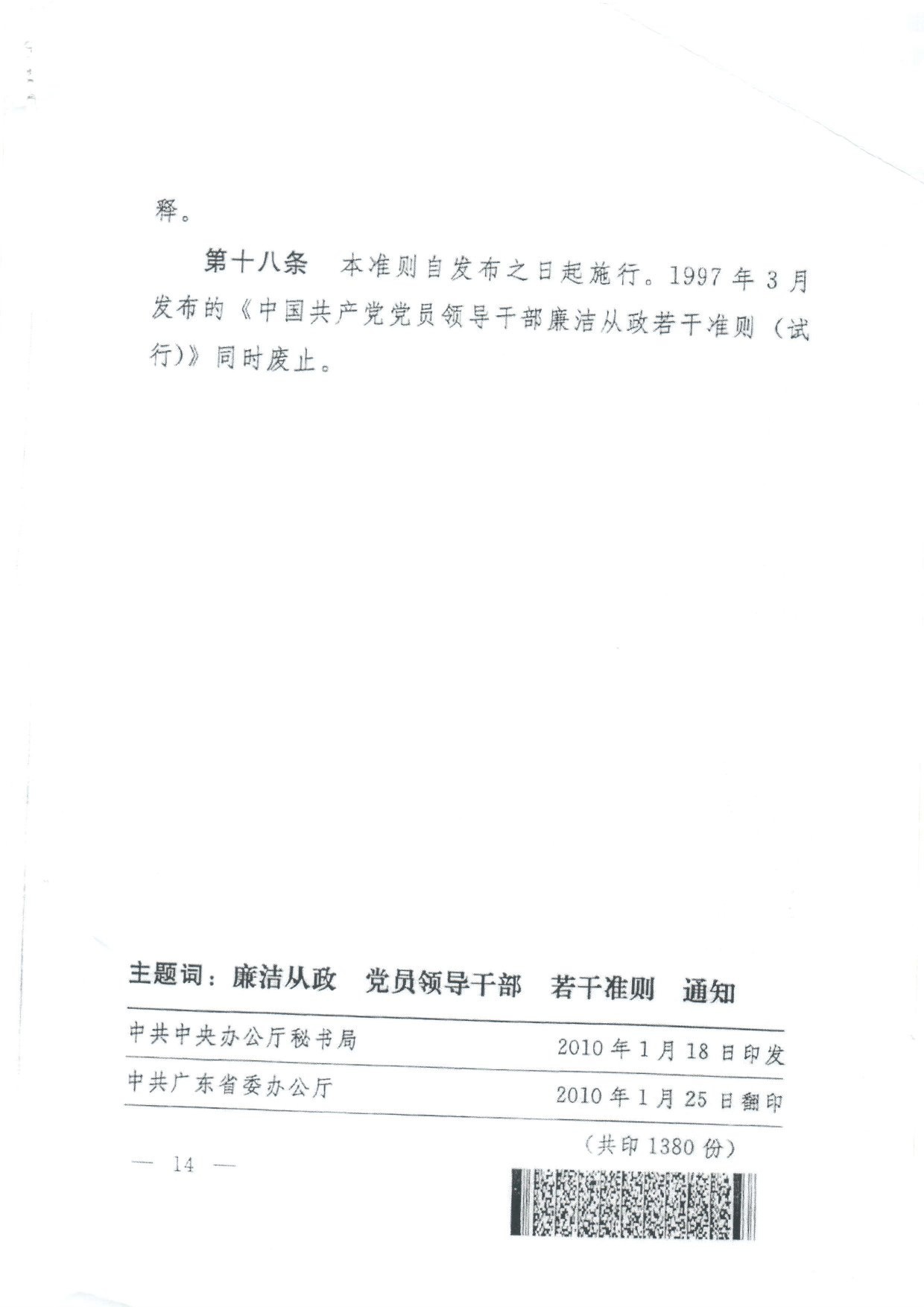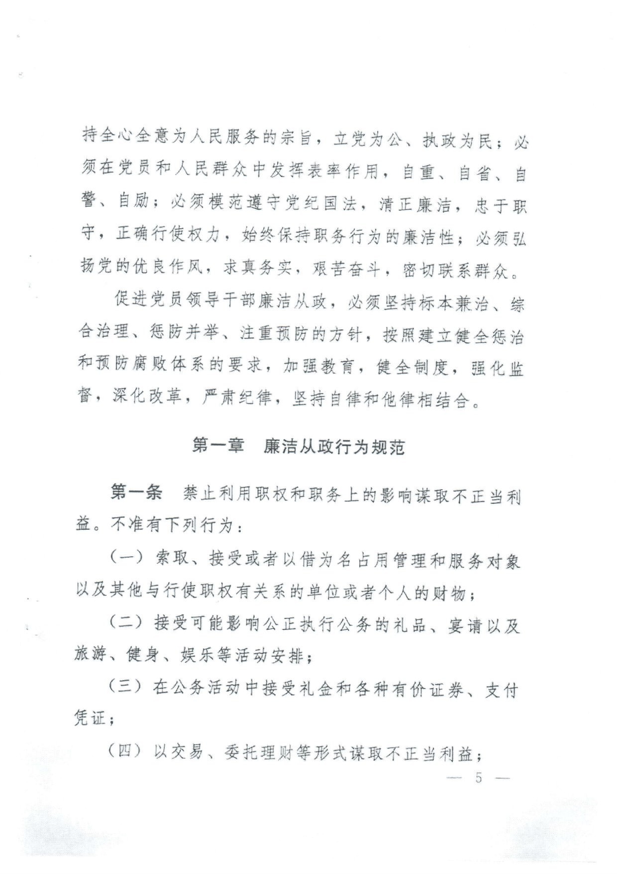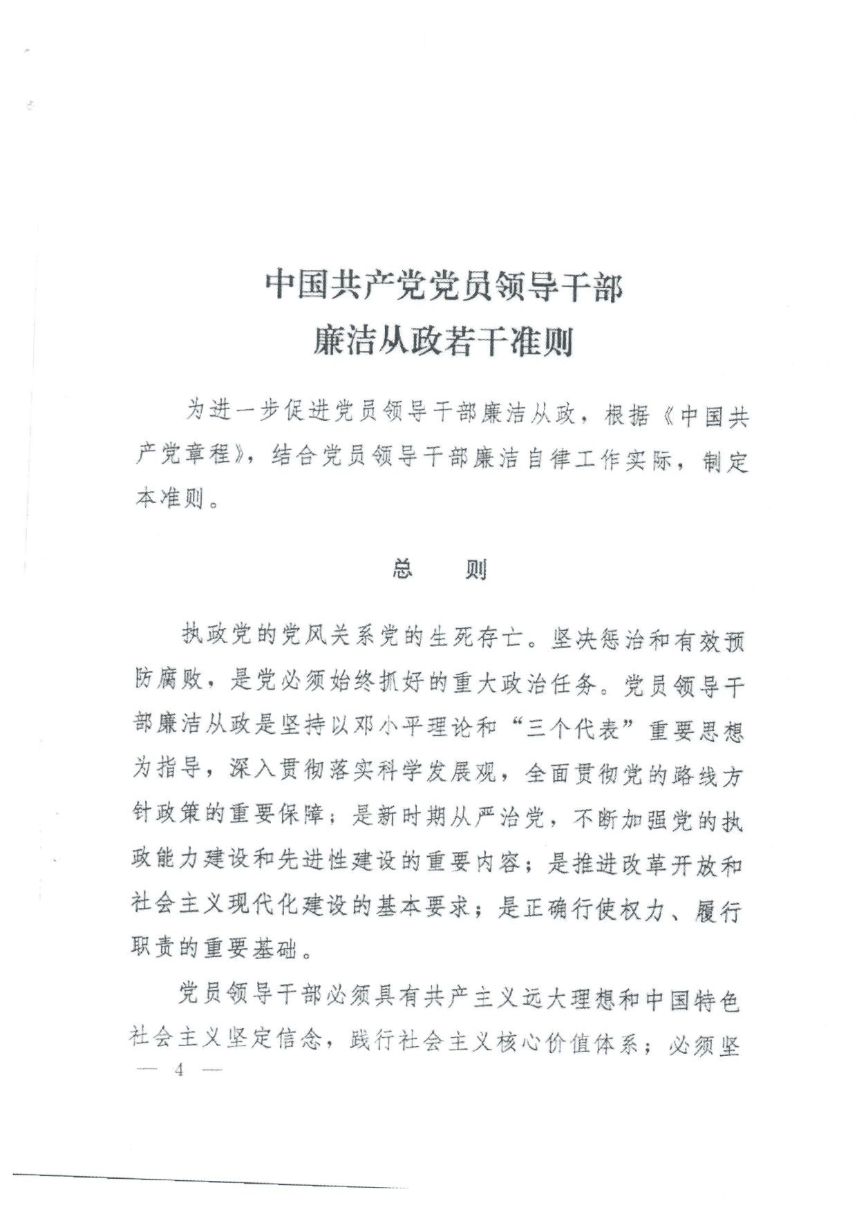 中国共产党员领导干部廉洁从政若干准则